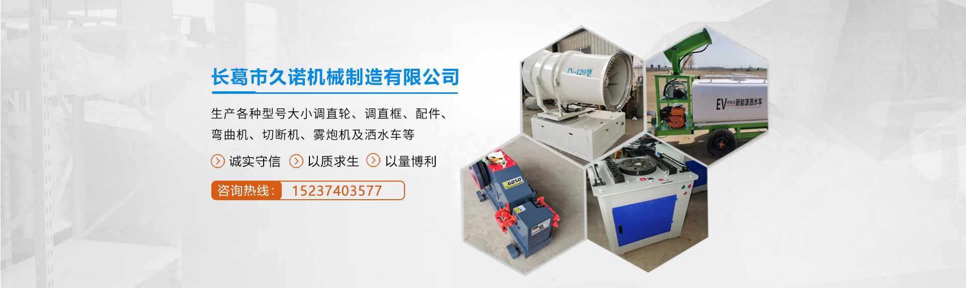 長葛市久諾機械制造有限公司(長葛市雙箭機械廠旗下公司)位于長葛市老城鎮(zhèn)崗張工業(yè)區(qū),公司產(chǎn)品擁有自己的品牌“金達”,是一家集機械產(chǎn)品研發(fā)、生產(chǎn)、營銷為一體的科技實體企業(yè)。主要生產(chǎn)6輪、7輪、8輪、重6輪、重7輪、重8輪調(diào)直框、調(diào)制輪、配件、彎曲機、切斷機、霧炮機及灑水車等。